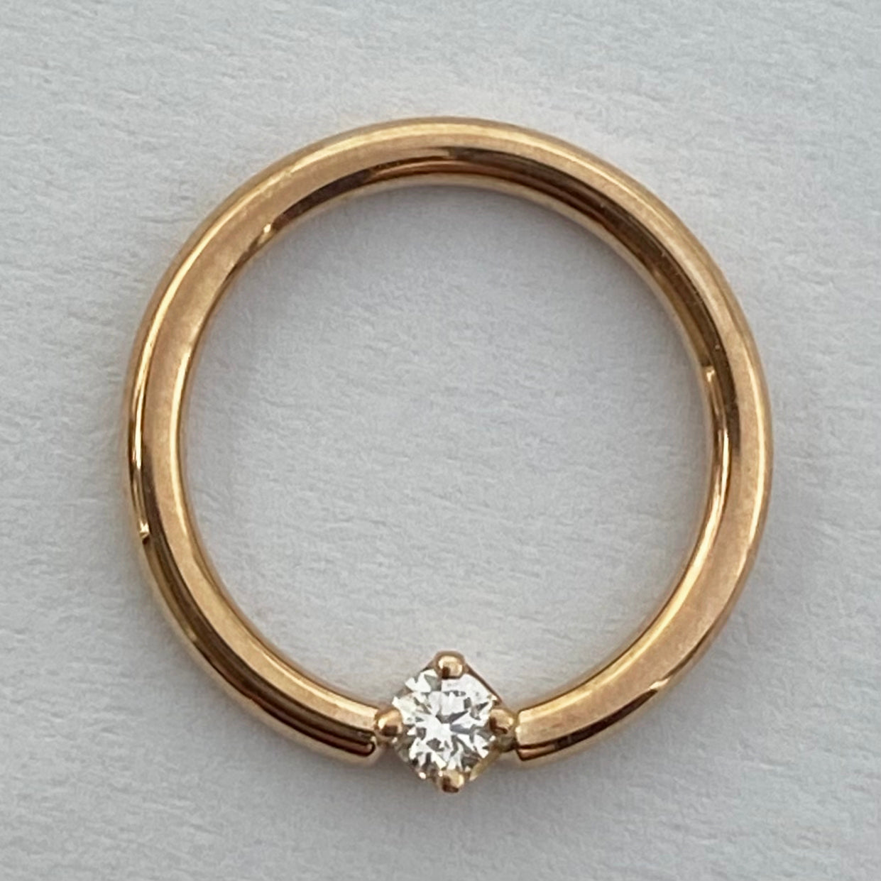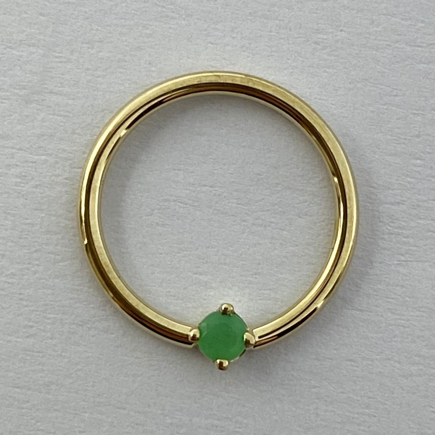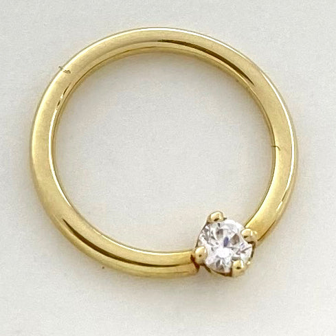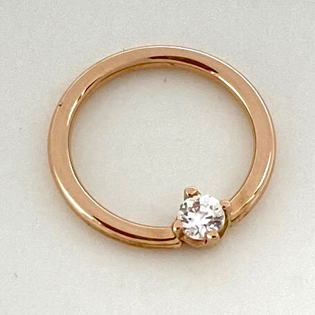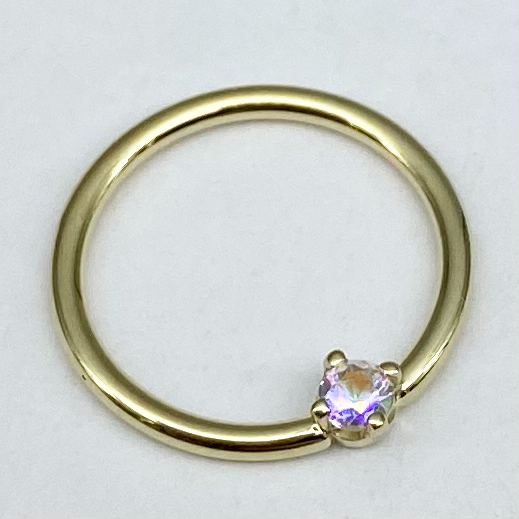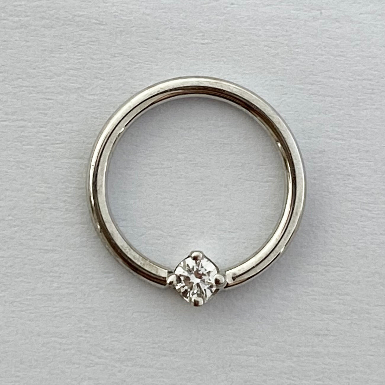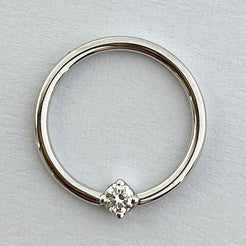 A simple seam ring with a delicate prong set gemstone, the sweetest way to spice up a simple ring. Perfect for a septum or daith!