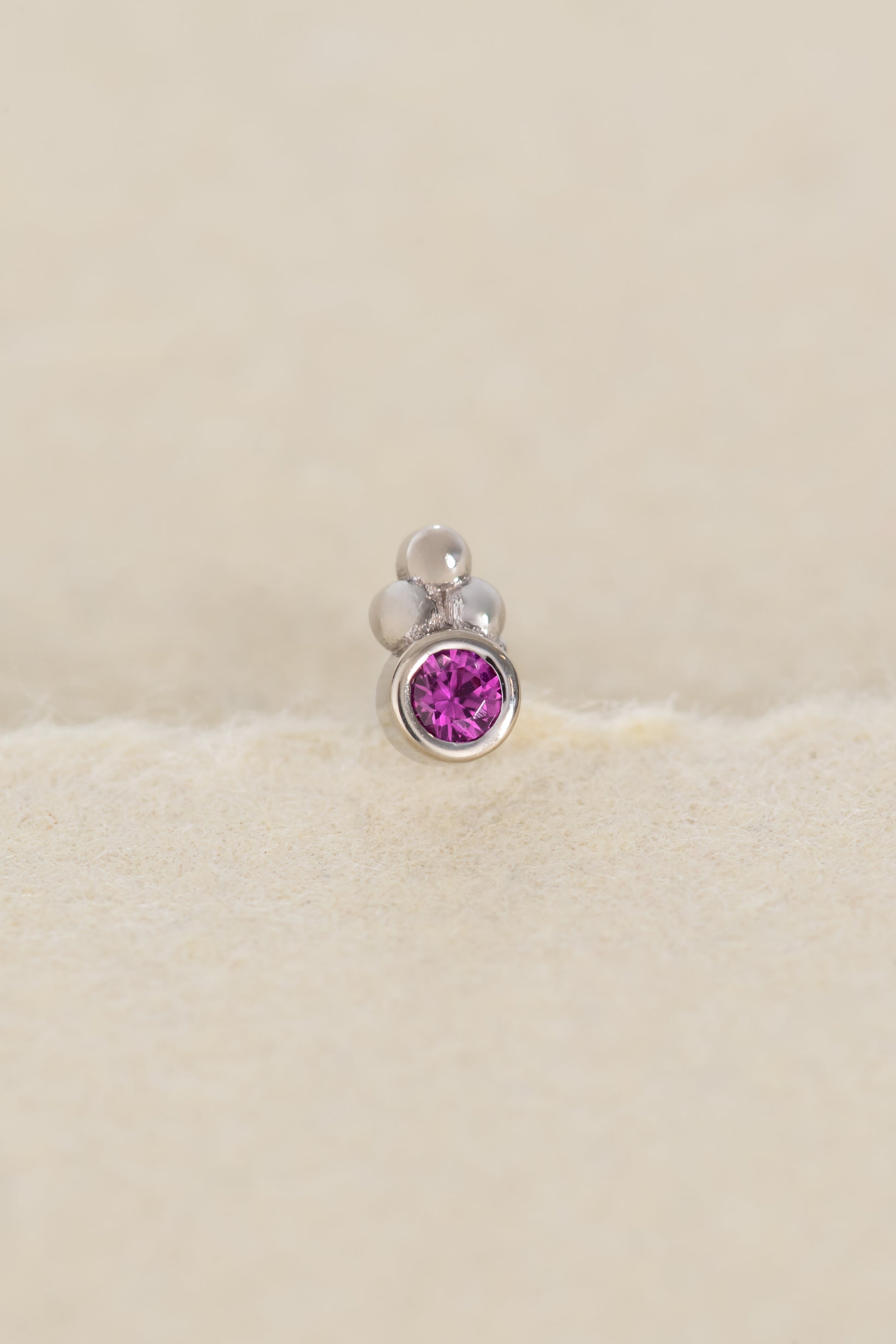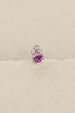 A bezel set gemstone accented with an elegant cluster of beads. This piece is perfect for any ear or face piercing but would suit a tragus, philtrum, or forward helix perfectly!