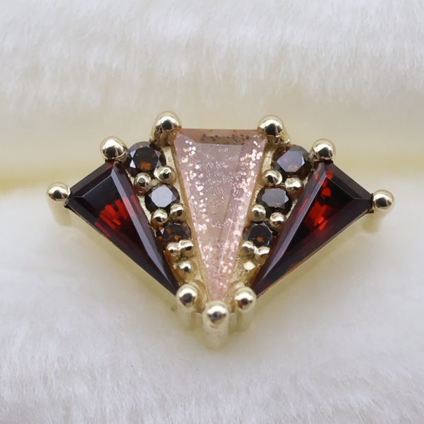 A bold geometric statement piece featuring stunning pennant cut gems accented by strips of graduating round gems.