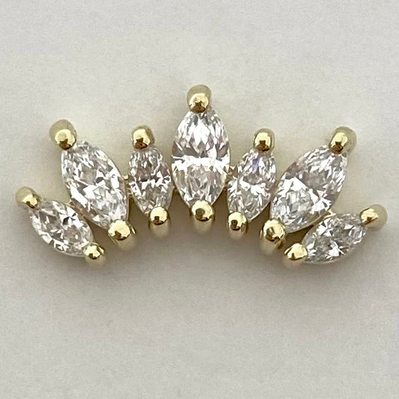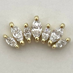 The Athena boasts an luxurious alternating marquise cut gemstones displayed in a curved, arc-shaped cluster. The perfect statement to accentuate the curvature of your helix, conch or earlobe piercing. Don't see the gold colour or gemstones you're looking for?