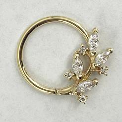 Delicate branch with stunning marquise prong leaves and round prong accents. The perfect piece for a daith piercing. ...