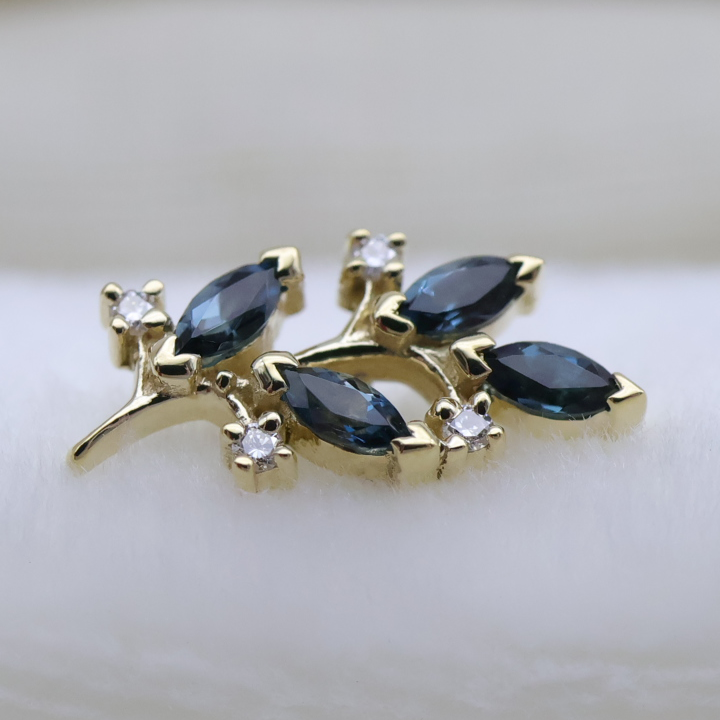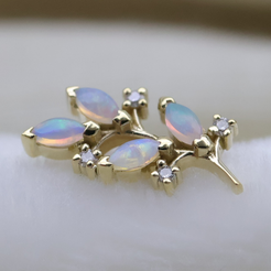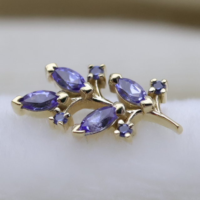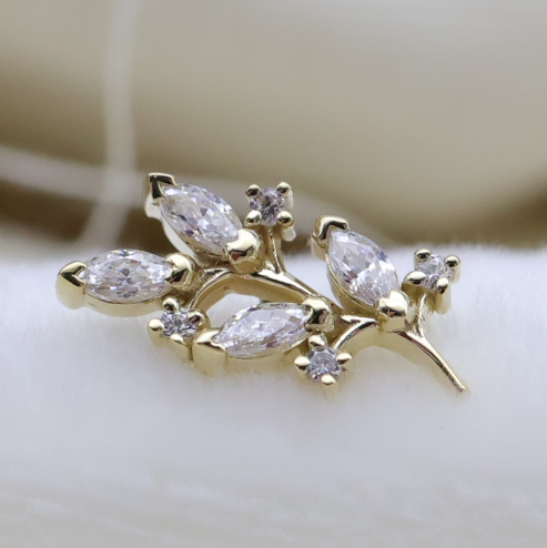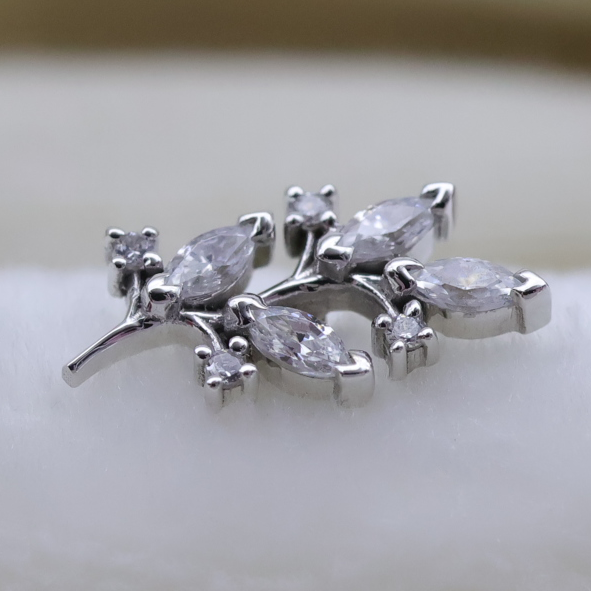 Delicate branch with stunning marquise prong leaves and round prong accents. The perfect piece for a helix or conch piercing.