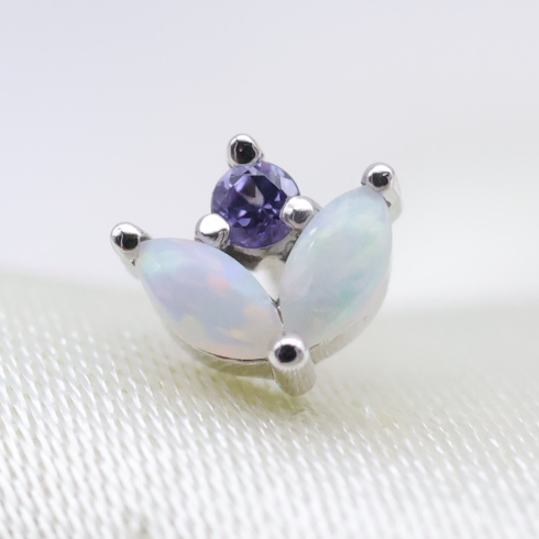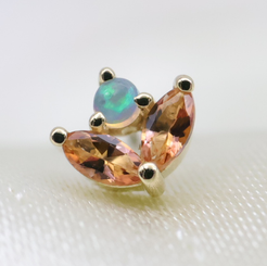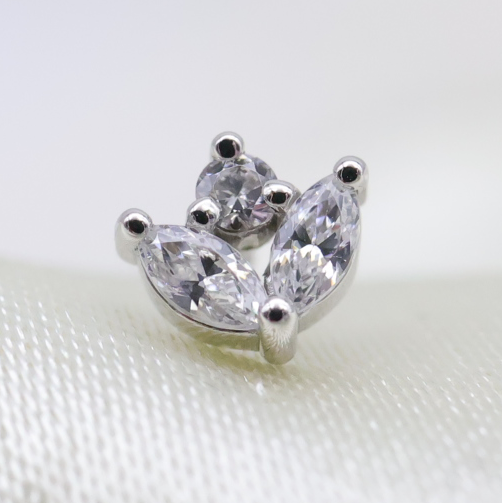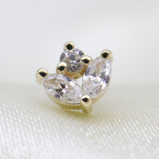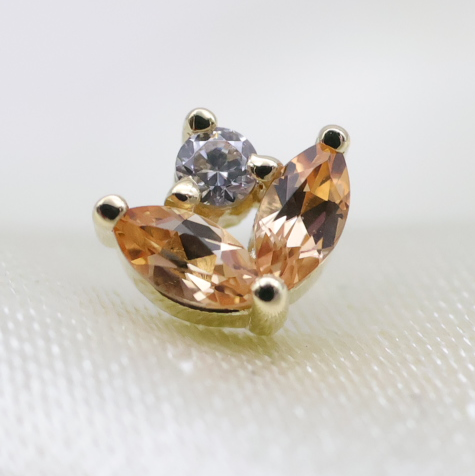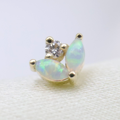 Two delicate marquise cut gemstones with a single round prong nestled between them, a stunningly elegant piece perfect for any ear or face piercing!