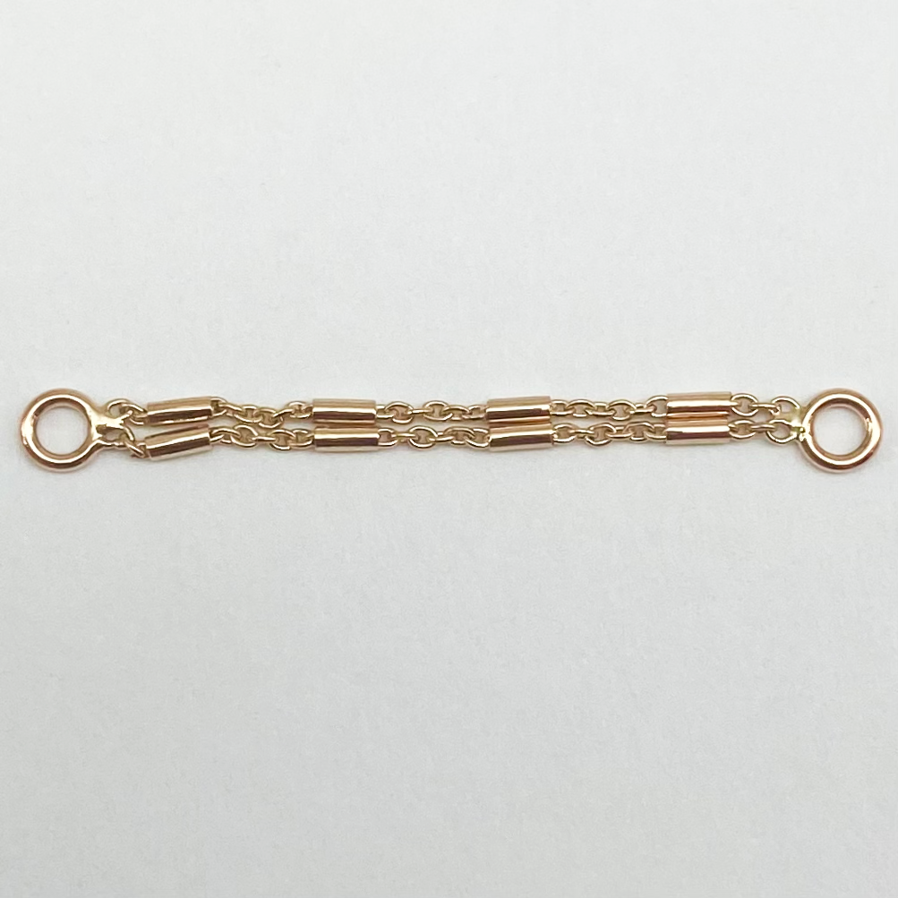Double equal lengths of cable chain with 1x2mm tiny cylinders. A stunning attachment to add to existing piercings, works perfect draped around a helix or earlobe.
