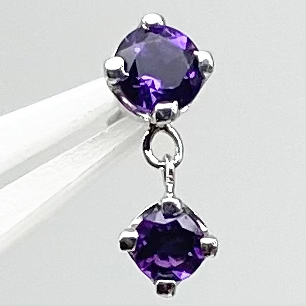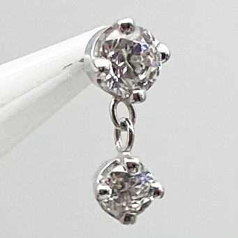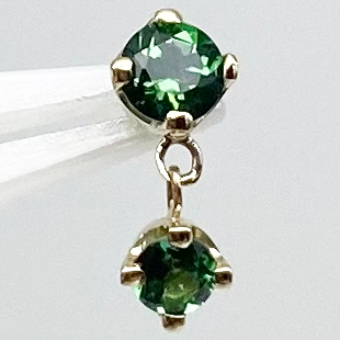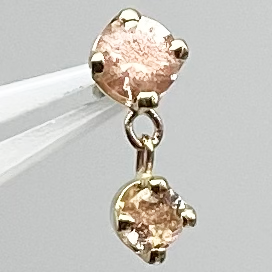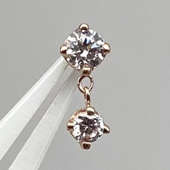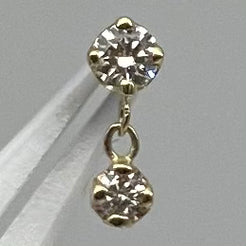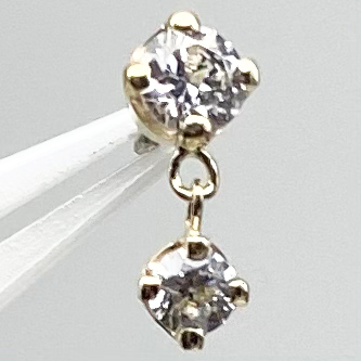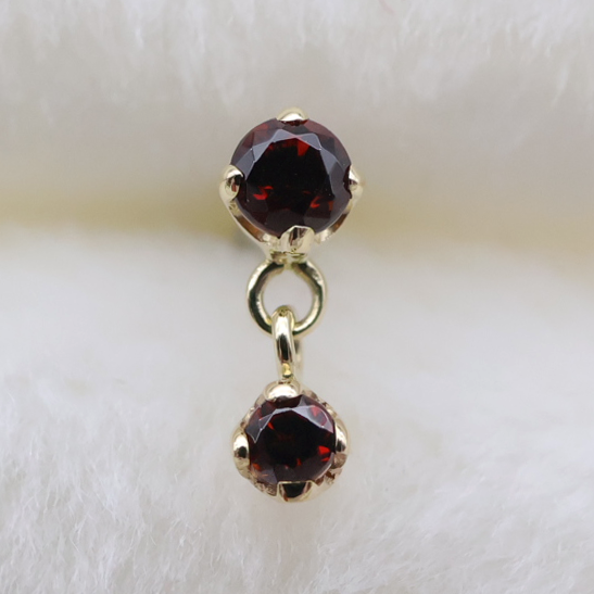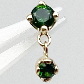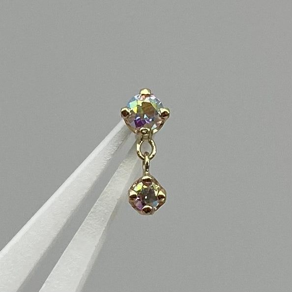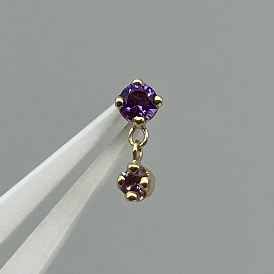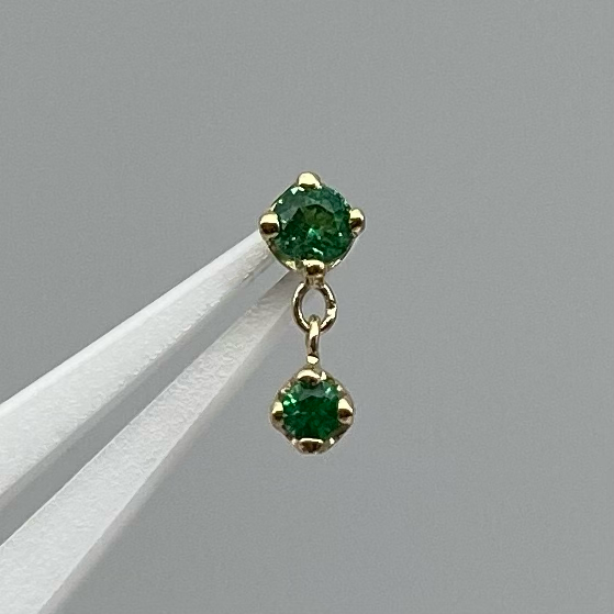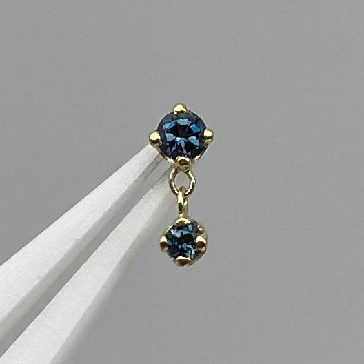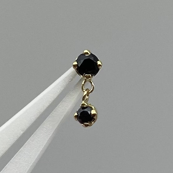 A duet of little prong set gemstones, with a tiny chain attachment holding them together to create movement sparkle. This piece is incredible for your tragus, helix, nostril or earlobe!