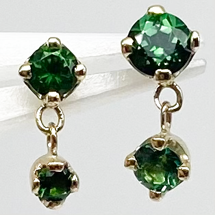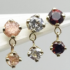 A duet of little prong set gemstones, with a tiny chain attachment holding them together to create movement sparkle. ...