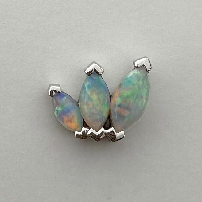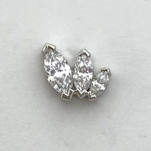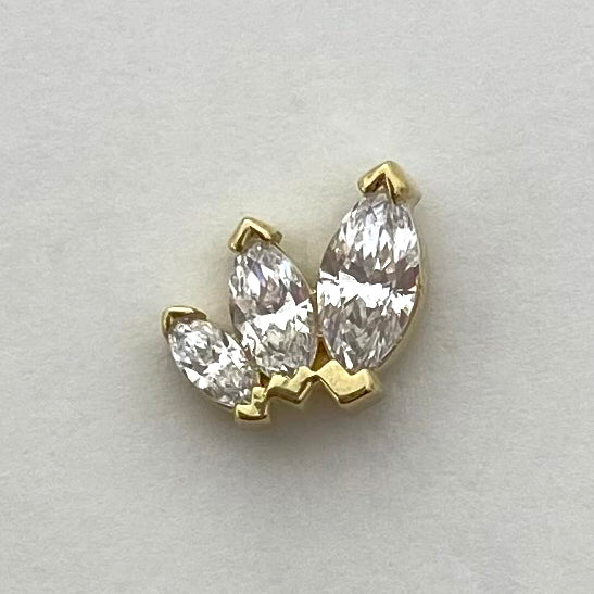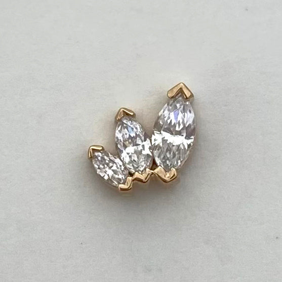 Three graduating sized, marquise cut gemstones come together in this elegant display of a fan. Like a beautiful, romantic kiss. This piece is perfect for your lobe, helix, faux rook or really anywhere you like!