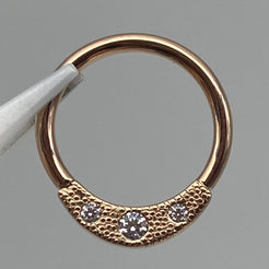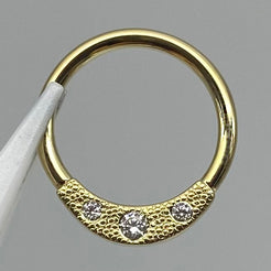 Subtle pave gemstone plate affixed to a ring for the perfect pop of delicate texture and sparkle. A gorgeous piece to wear in your septum or daith piercing.