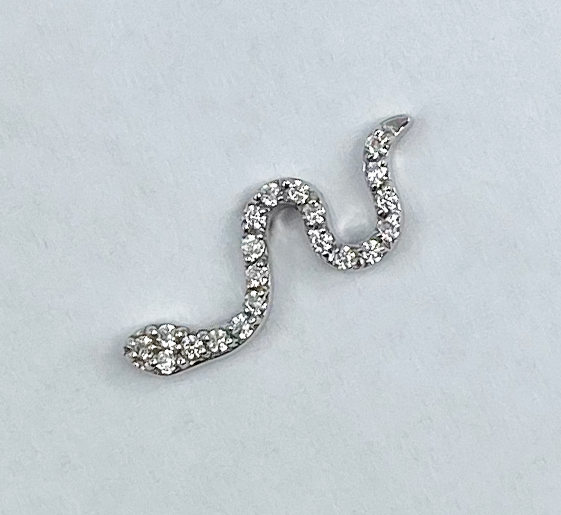 Delicate snake glistening with gemstones. This piece would perfectly compliment the high lobe, helix or conch.