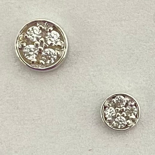 Pave set gemstones in set across the front of this round disc end. This piece would be perfect for a wide variety of ear, nostril and lip piercings!