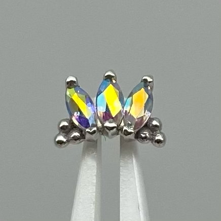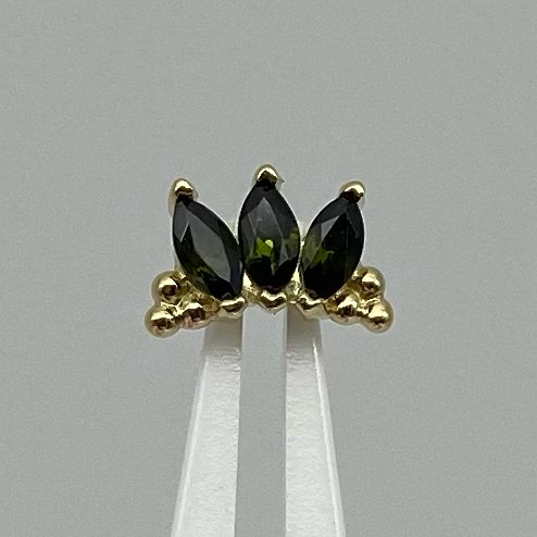 A luxurious fan of marquise cut gemstones accented with beaded clusters, an elegant statement piece perfect for your earlobe, helix, conch, faux rook or tragus piercing.