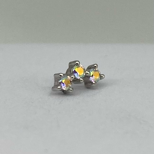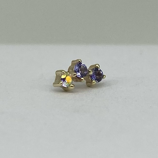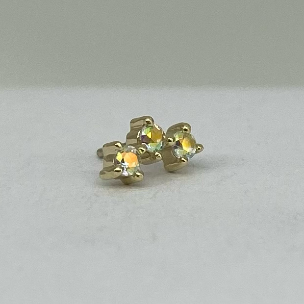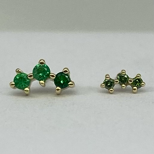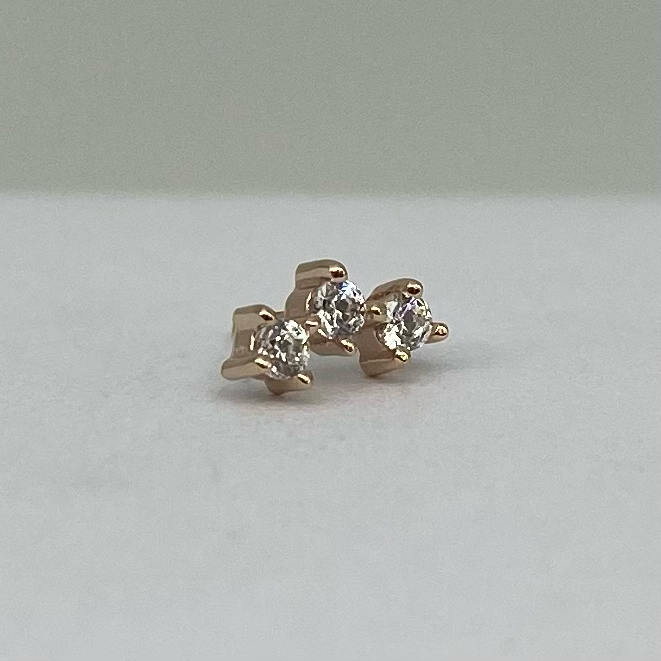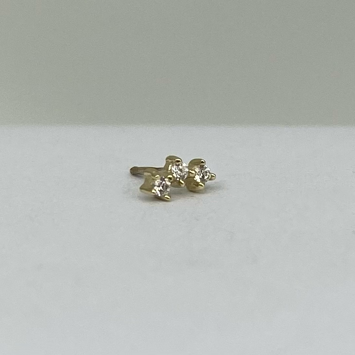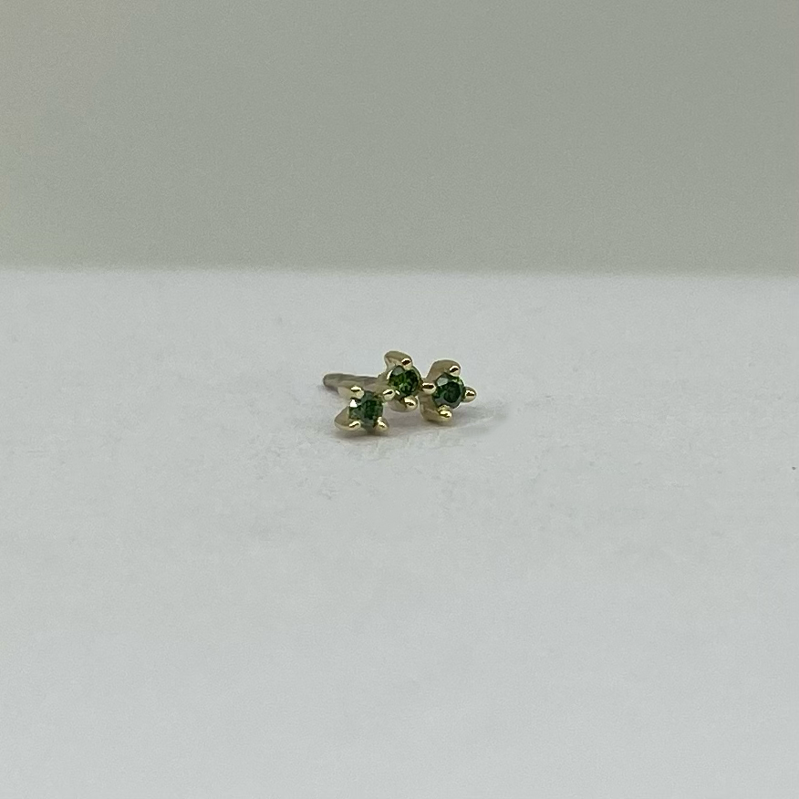 Delicate cluster of brilliant cut gems, the perfect piece to accent the subtle curvature of your ear. This piece would be perfect in a tragus, high lobe or forward helix.