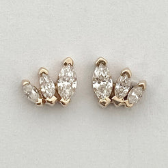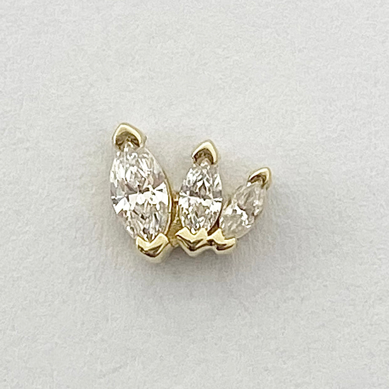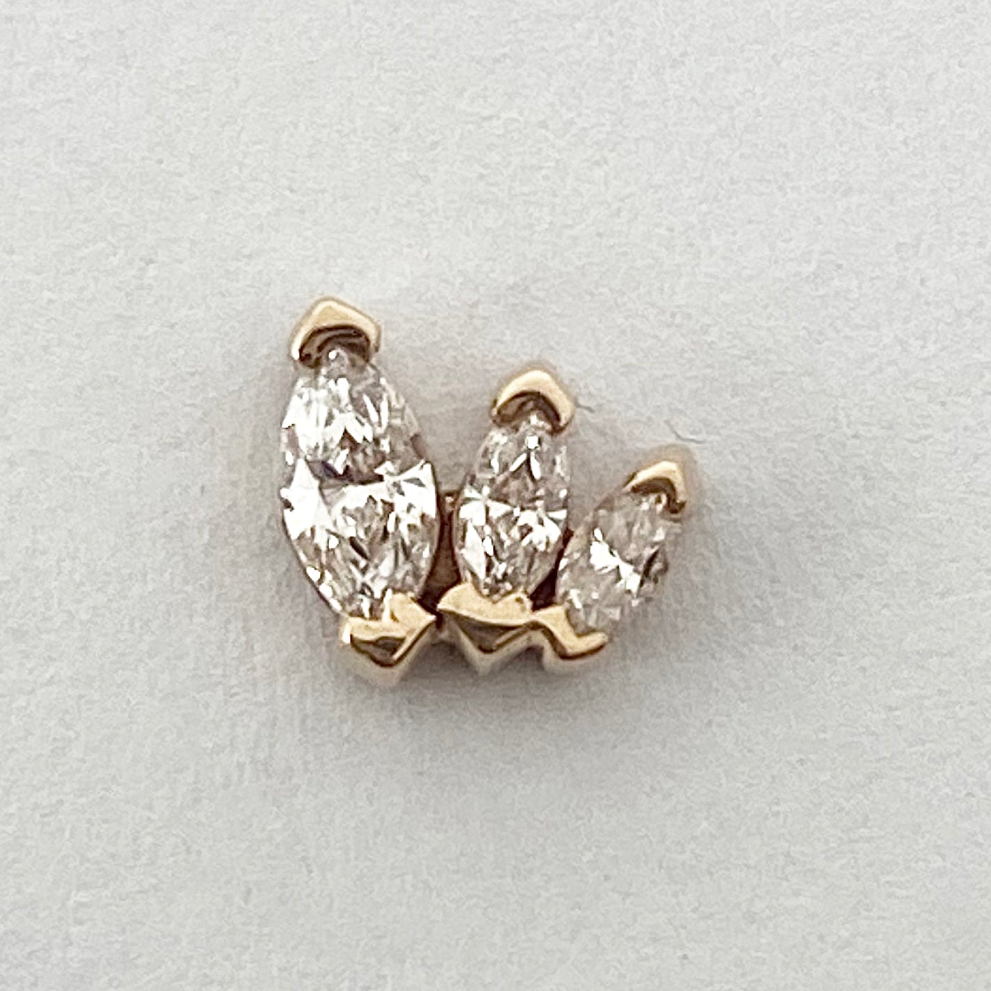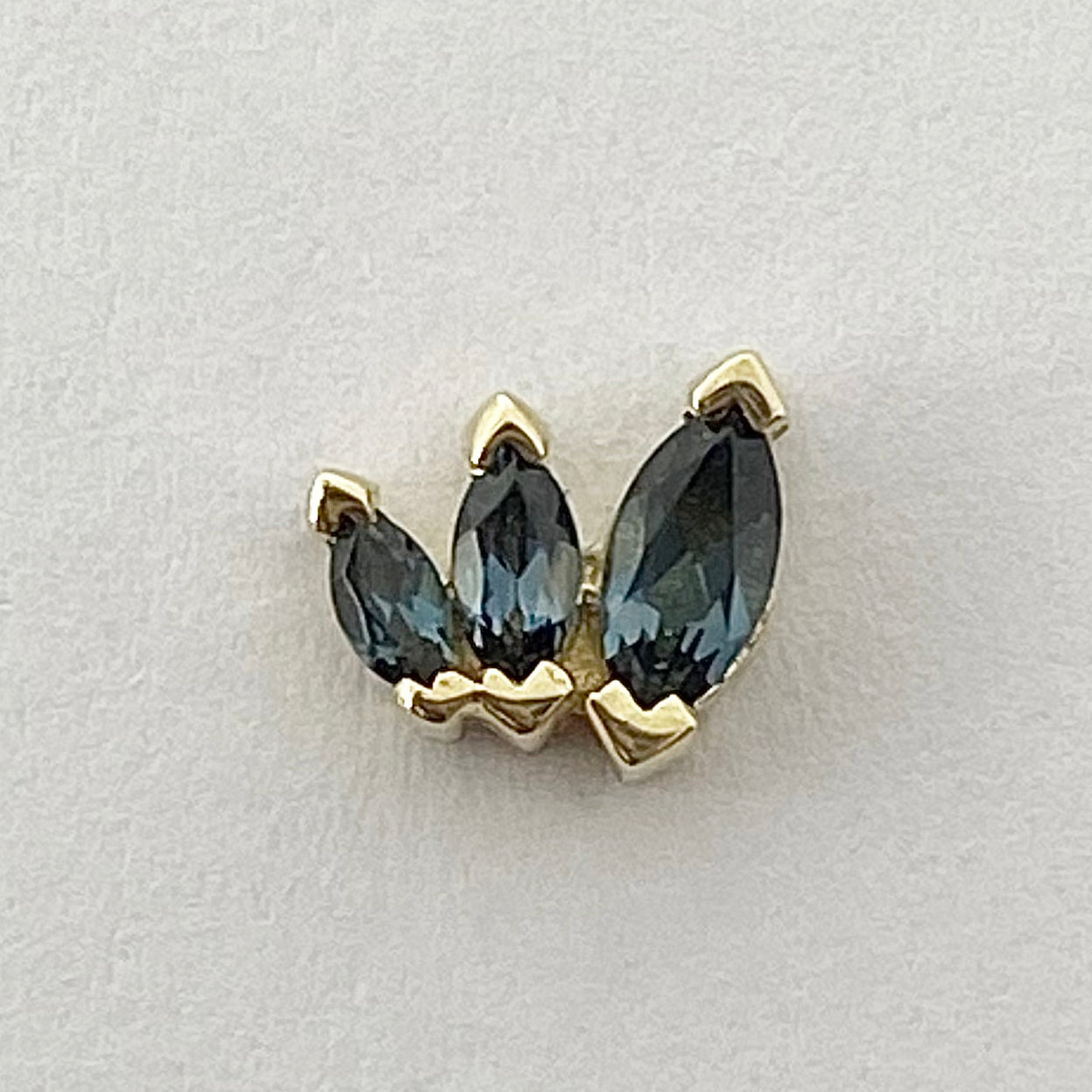 Three graduating marquise gemstones come together to create marquise fan on a pitch . This piece is perfect for your lobe, helix, faux rook or really anywhere you like!