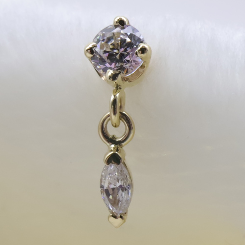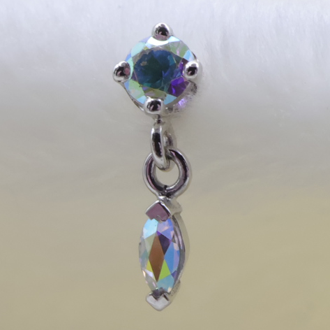 Two gorgeous gemstones, a round and a marquise connected with a tiny chain attachment holding them together to create movement sparkle. This piece is incredible for your tragus, helix, nostril or earlobe!