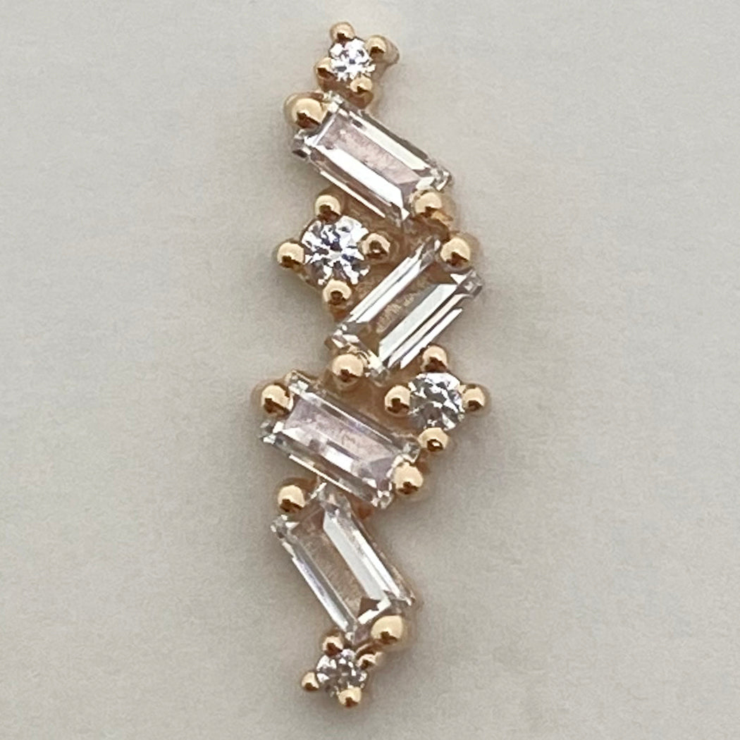 Baguette and brilliant cut gemstones stacked together to create this incredible cluster. A bold, statement piece perfect to adorn your helix or earlobe.