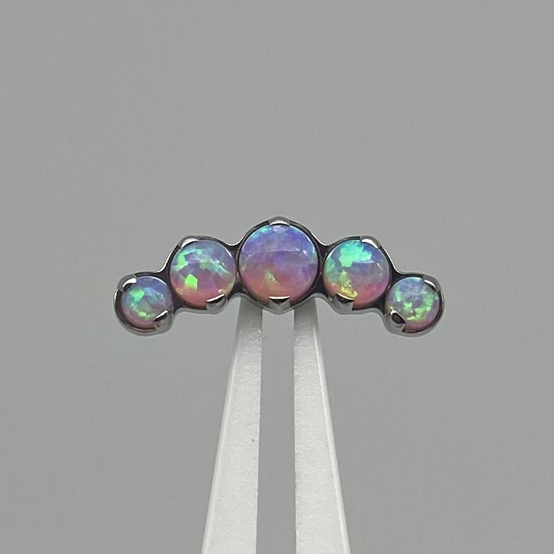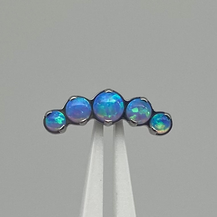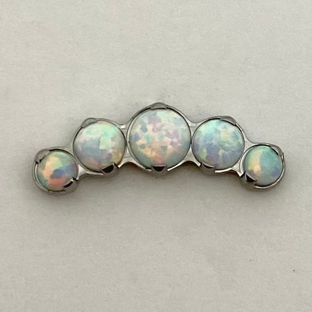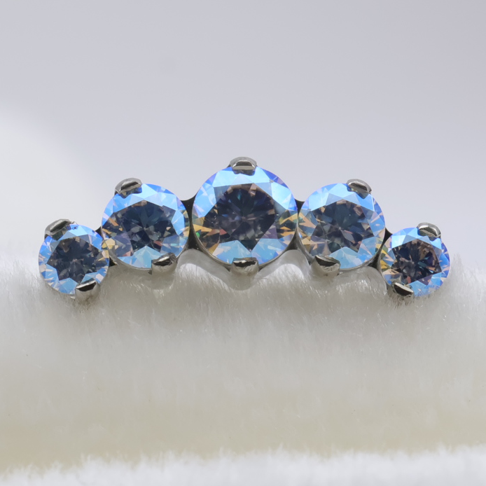 Five brilliant cut gemstones in an arc shaped cluster, perfect to accentuate the curvature of your conch, heli...