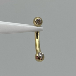 This delicate curved barbell features two 1.5mm forward facing flush set gemstones. This piece is perfect for rook, eyebrow or snug piercings.