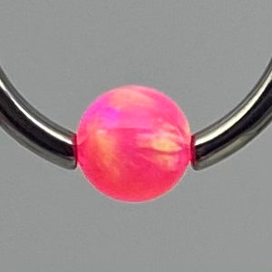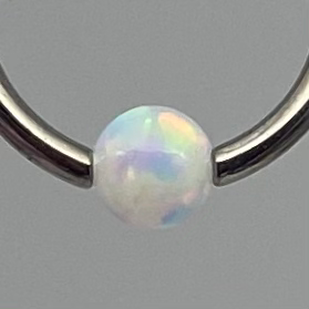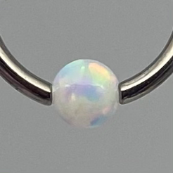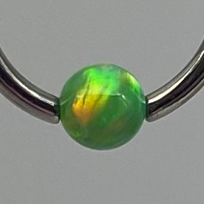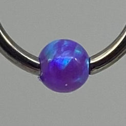 These stunning lab created synthetic opals come in a range of different colours. They have no setting, so give the effect of a floating opal on your captive ring. They can be worn in any piercing a captive rings is suitable for. Septum, helix, daith, earlobe, conch, nostril and do many other places!