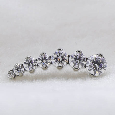 Simple round, graduating round gems set on a curve. This would be stunning in a helix or curving up your lobe.