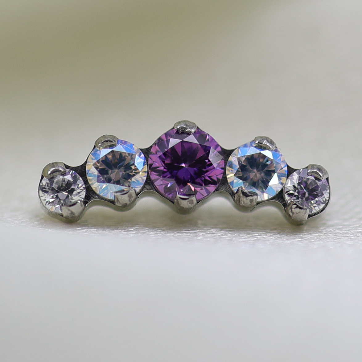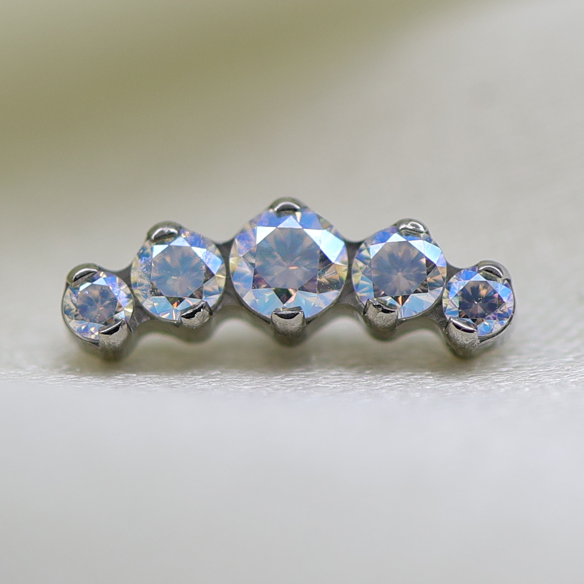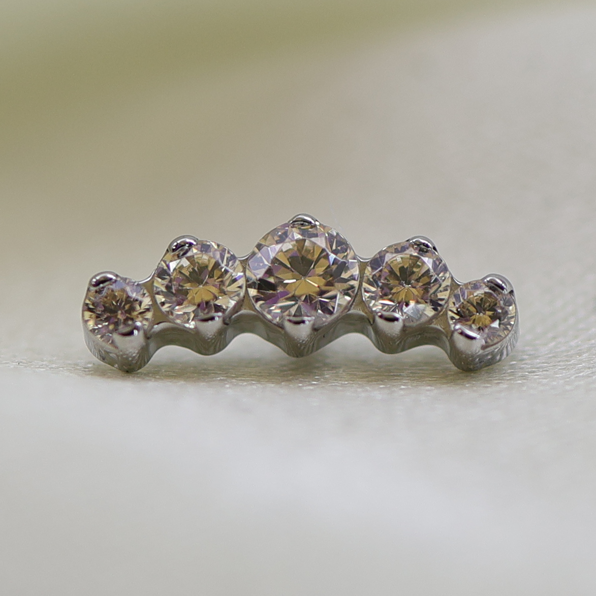 Five brilliant cut gemstones in an arc shaped cluster, perfect to accentuate the curvature of your conch, helix or earlobe.